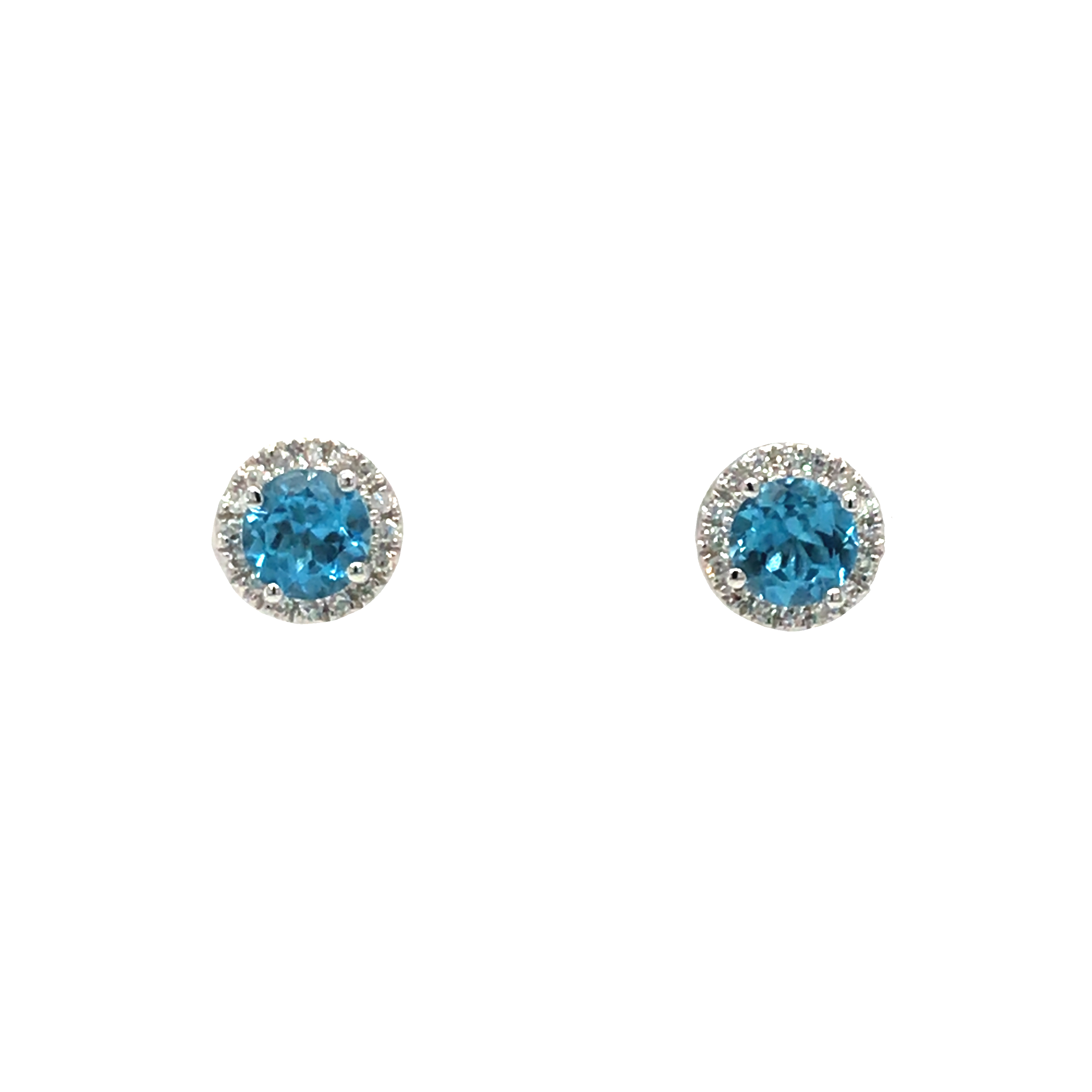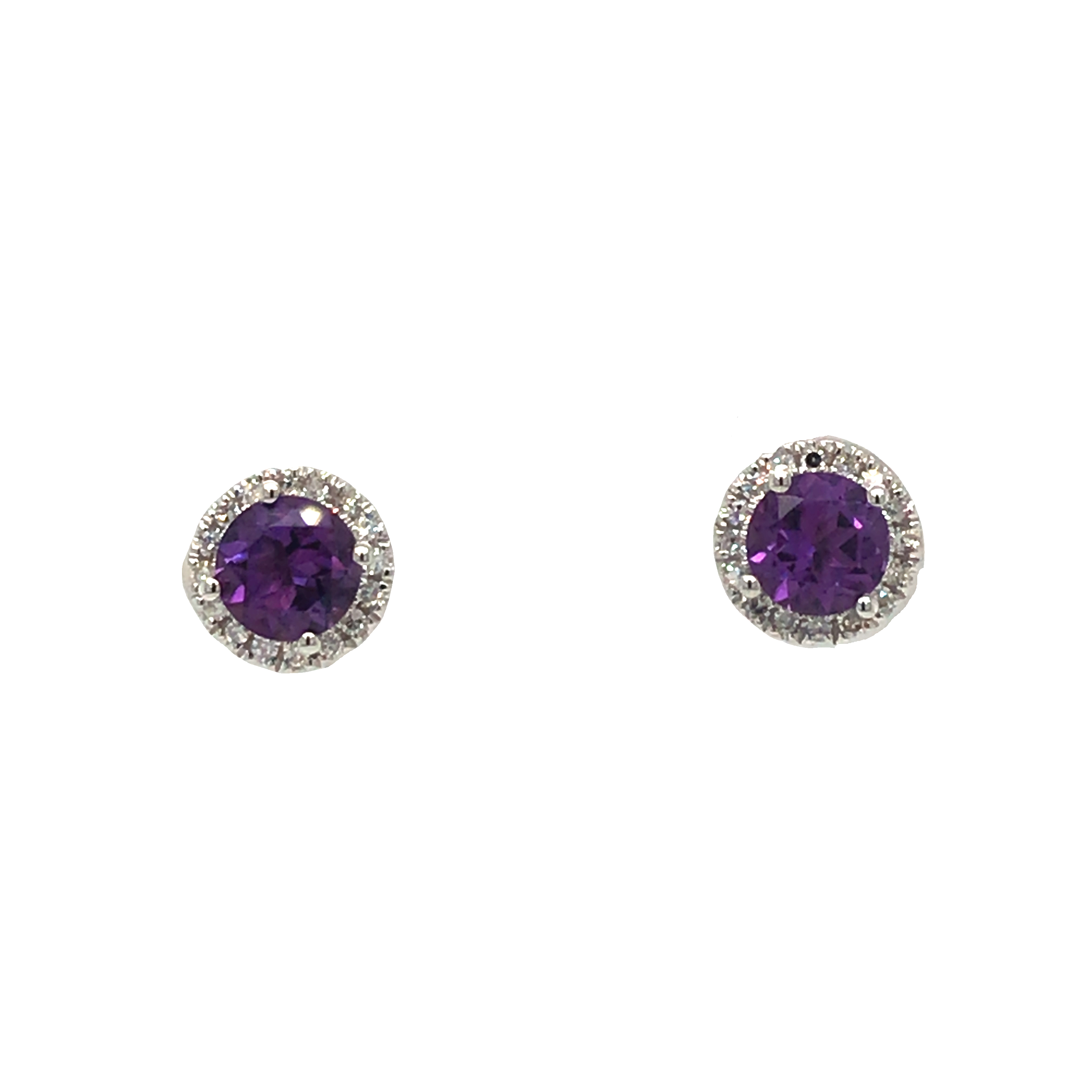 These darling earrings would make a perfect birthday gift of a first colored gem piece for any jewelry wardrobe. These 10K white gold earrings feature a stunning round cut, colored center gemstone surrounded by a halo of glittering diamonds. These stud earrings have a standard friction post and back.
