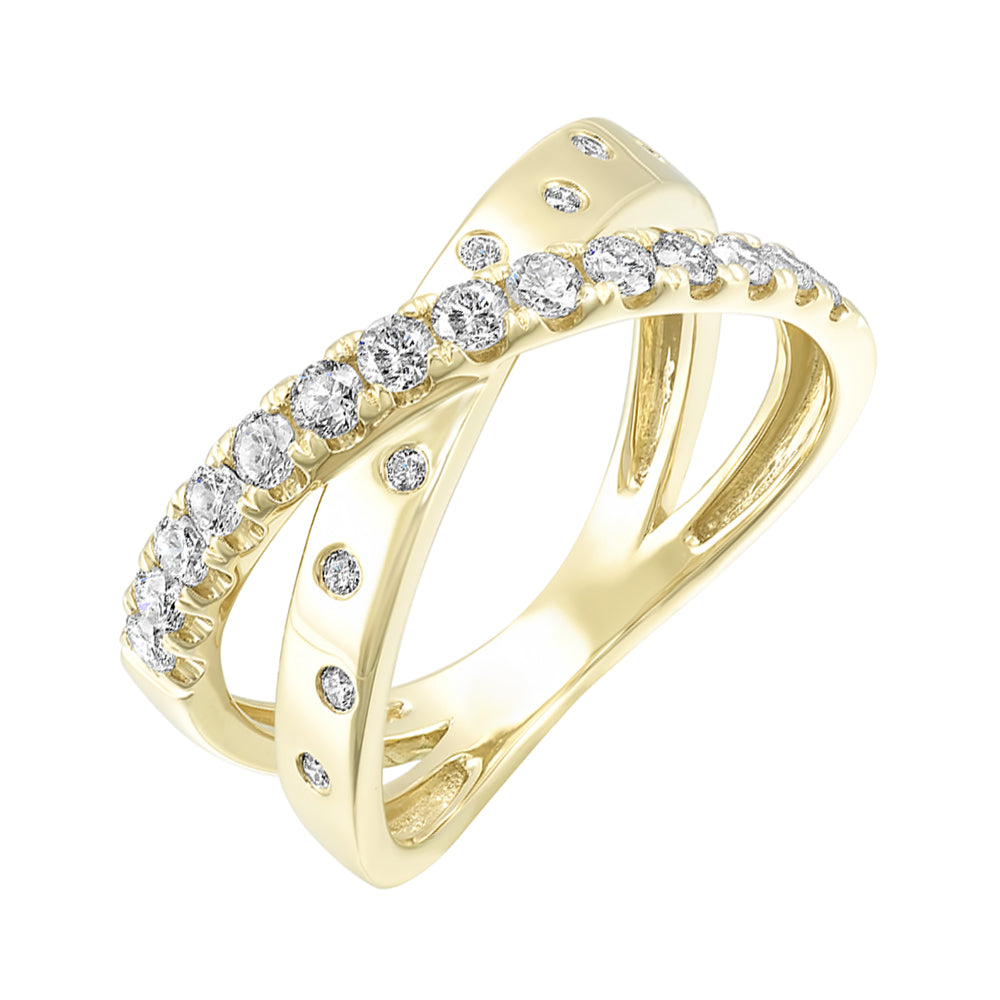 14K Gold and Diamond Criss-Cross Fashion Ring