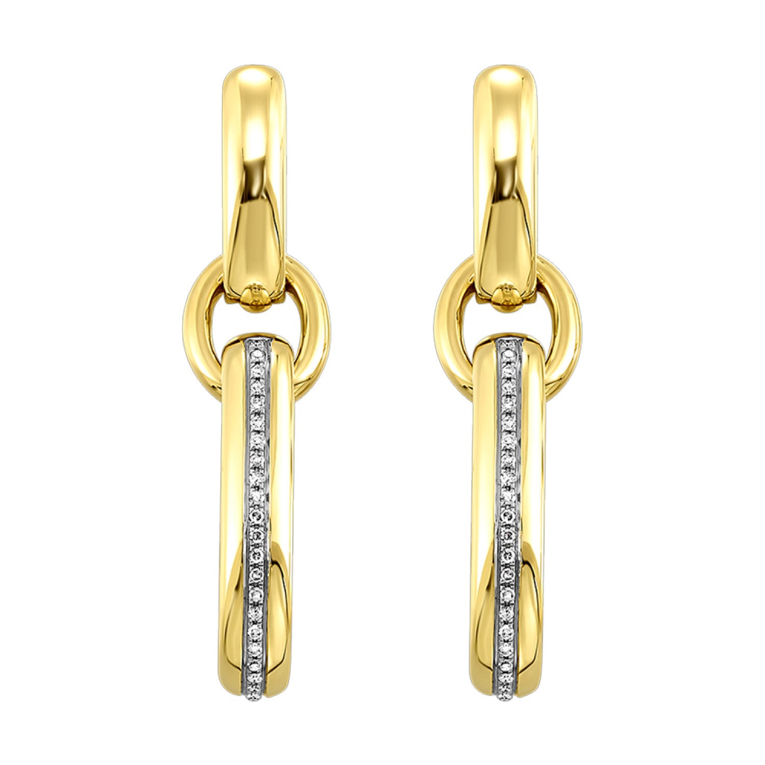 These 14K yellow gold earrings feature a drop dangle design with stunning diamond accents (1/6CTW). They are sure to elevate any outfit and a bit of sparkle to your day.