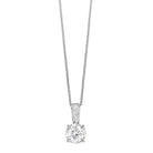 This gorgeous diamond pendant is a perfect every day piece sure to fit seamlessly into any jewelry wardrobe. This pendant features one round brilliant cut diamond prong set in high polish 14 karat white gold. A row of diamonds accents the tapered bail.