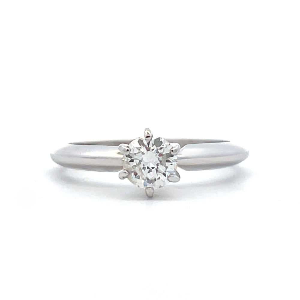A simple yet elegant diamond engagement ring for that special someone looking for the perfect ring. This timeless solitaire features a .46 carat round diamond and is the perfect way to celebrate your endless love.