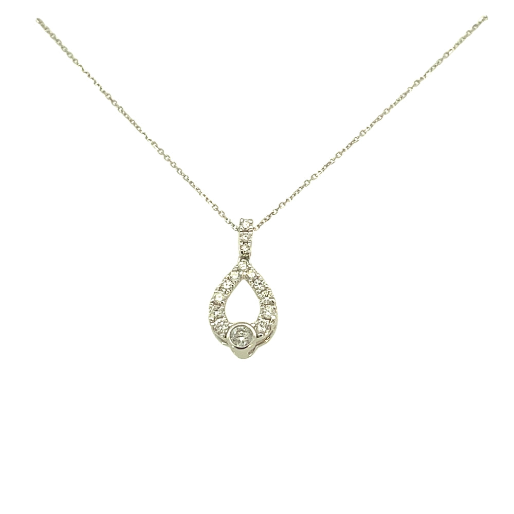Discover the beauty of simplicity with this elegant white gold pendant necklace. Its unique teardrop design, adorned with a sparkling center stone, adds a touch of sophistication to any outfit. Perfect for both casual and formal occasions, this piece is a must-have for your jewelry collection. Crossroads Natural diamond 1/4ct tw.