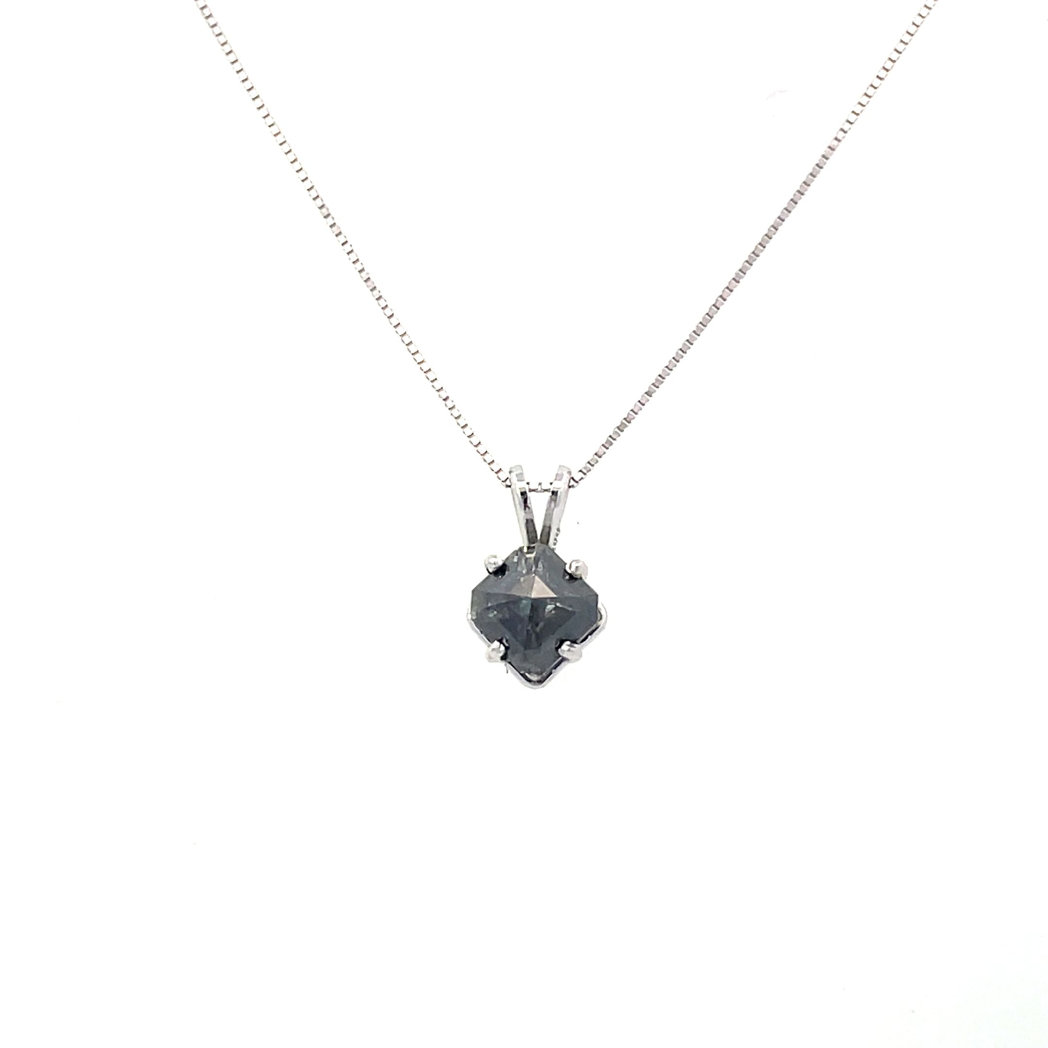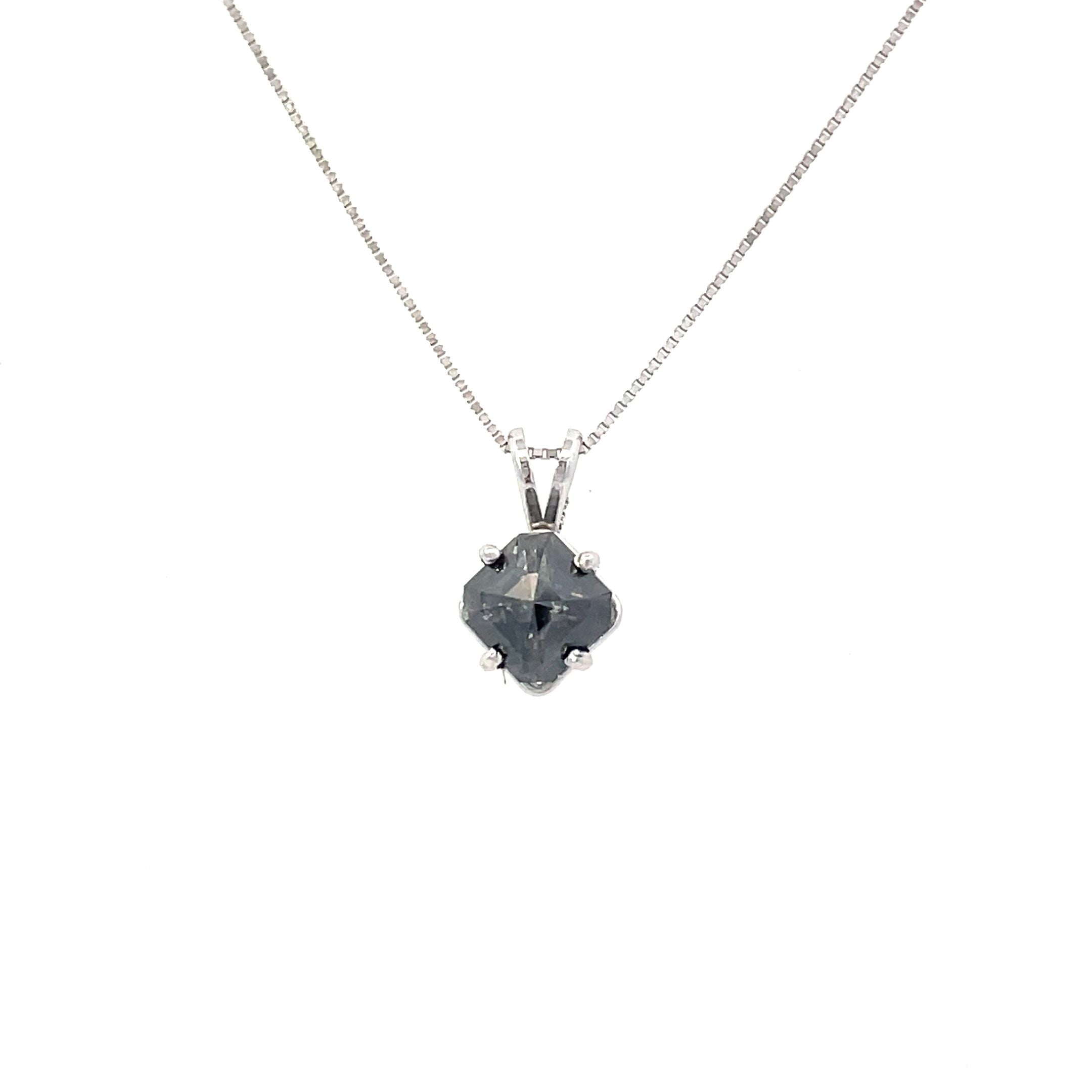Expertly crafted and designed, this 14K white gold pendant from Fernbaugh's Jewelers showcases a 1.01 carat salt and pepper diamond in an elegant rose cut, Asscher shape. This pendant comes with a 20" box chain for added versatility. Upgrade your jewelry collection with this stunning piece.