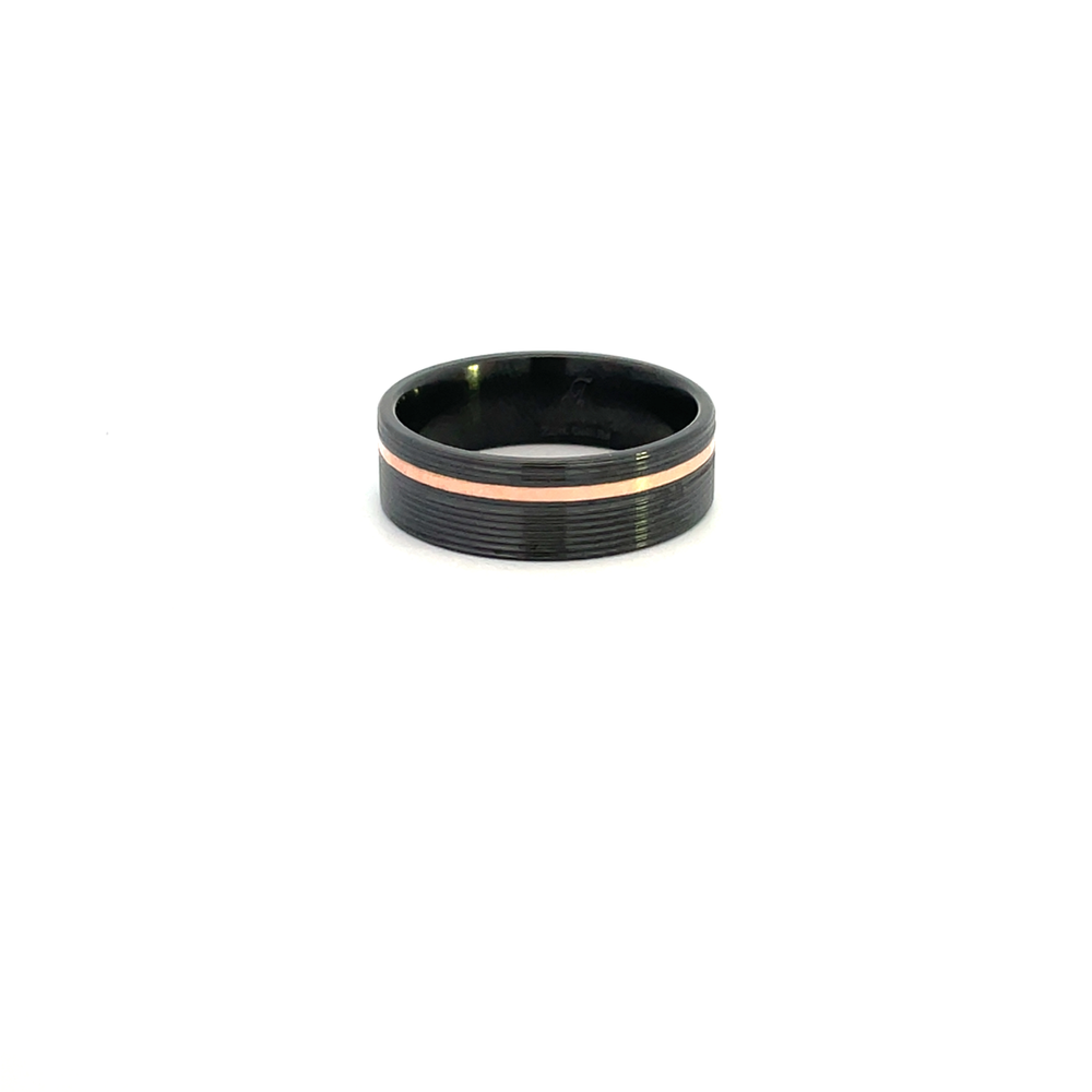 7mm Zirconium Flat Machine Finish 1mm 14k Gold Offset Inlay