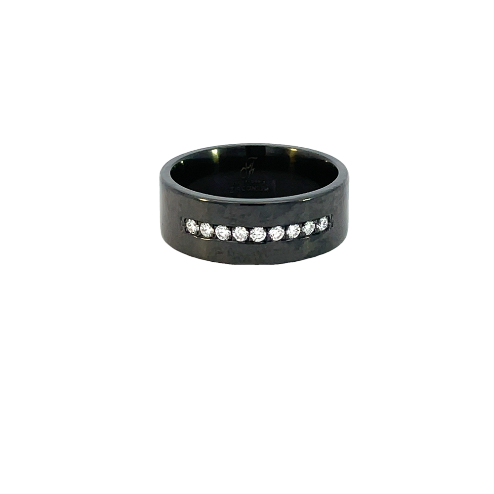 Black Zirconium 8mm Flat Gents Diamond Wedding Band