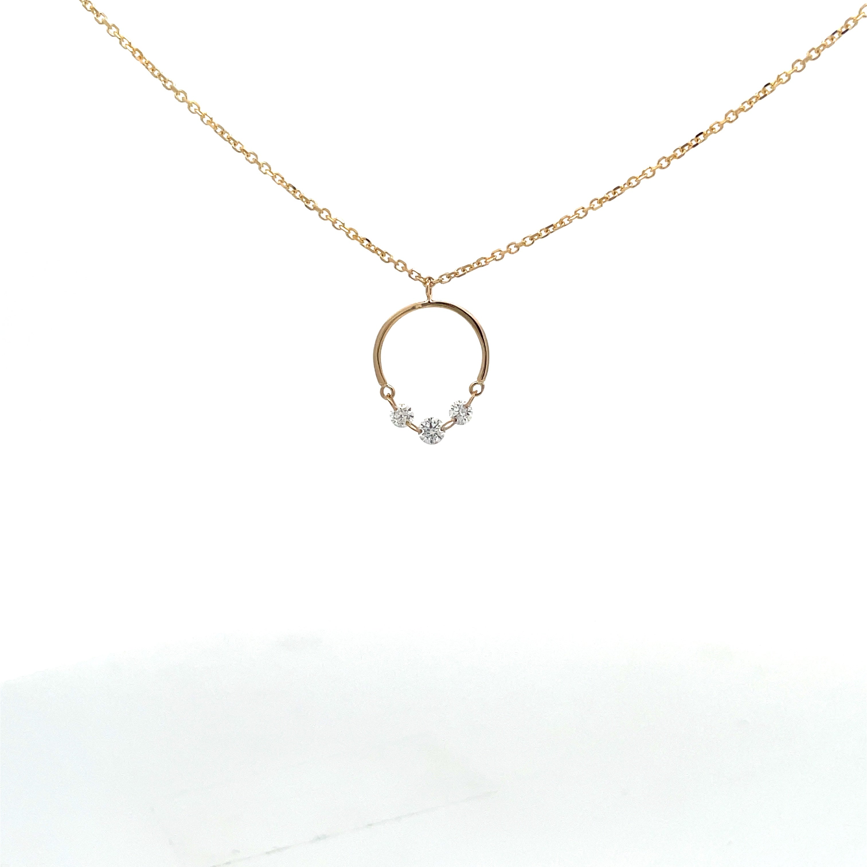 This stunning dancing diamond gold necklace features a delicate chain and a beautifully crafted circular pendant adorned with sparkling diamonds. Perfect for adding a touch of elegance to any outfit, this piece is ideal for both everyday wear and special occasions. .18tw