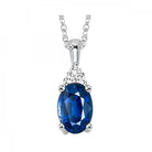 A deep blue 3/8 carat sapphire pairs with 1/50 carat of diamonds in this 10K white gold pendant—simple, rich, and timeless.