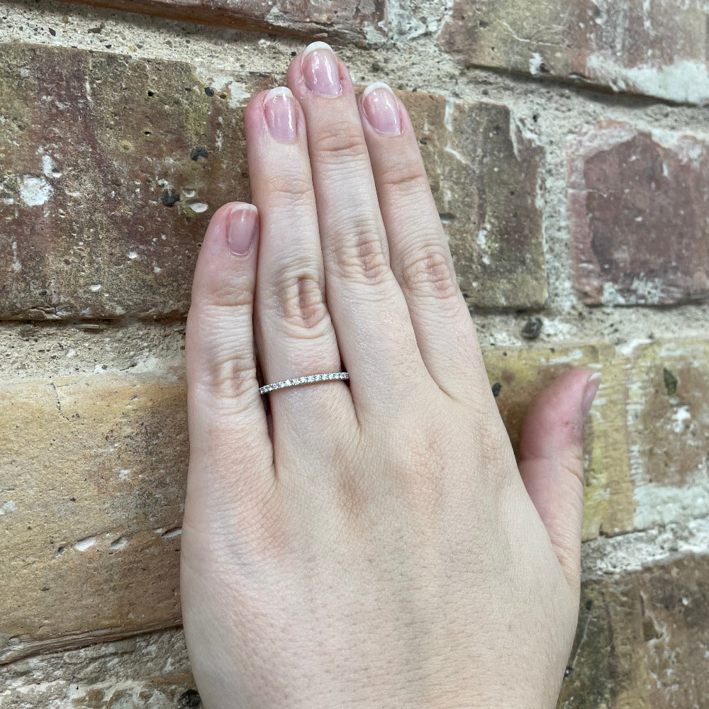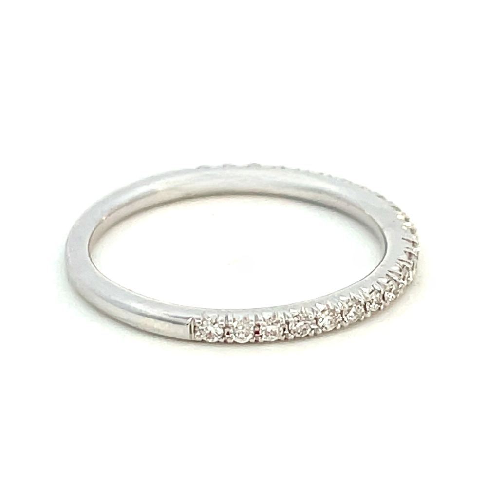 This beautiful 14k white gold diamond wedding band features 23 stunning diamonds (1/4CTW) and would make the perfect companion for your engagement ring to complete a perfect wedding set.