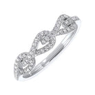 This sweet ring is perfect for layering! Made of 10 karat white gold, this ring features 1/6 carat total weight of diamonds set in a 3-station design. Each station is pear-shaped and features a little bit of negative space on the inside of the pear shape.