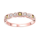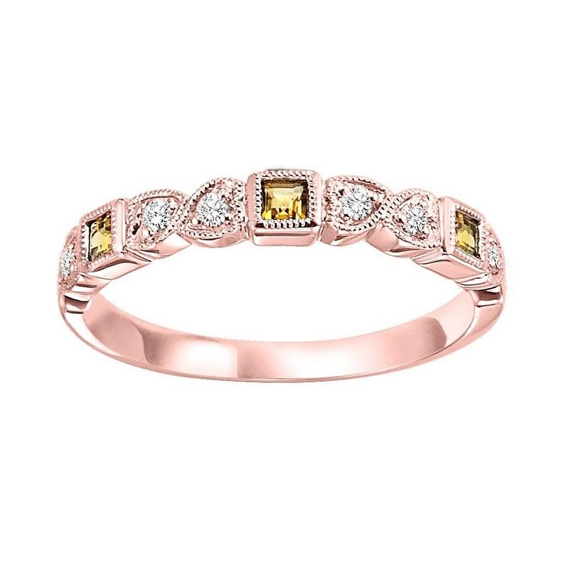 This beautiful 14K Rose Gold Citrine Band with diamond accents (1/10CTW) is a stackable ring that can be mixed and matched with a variety of stunning bands. These stackable rings are the perfect jewelry choice for you or your loved one.