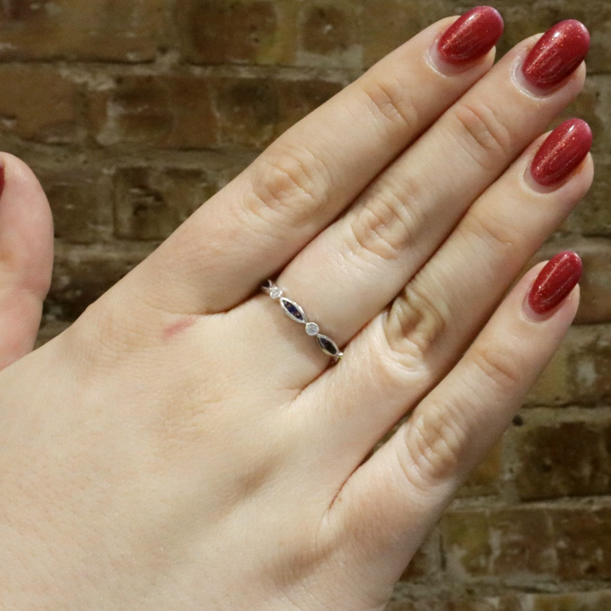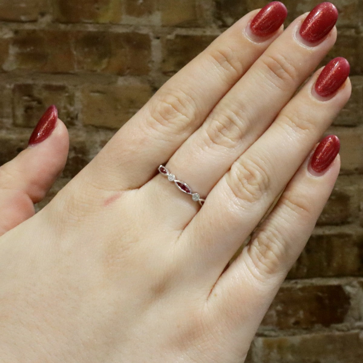 Stackable rings excel as accents to your other jewelry, but are versatile enough to stack together or experiment with something new! Try mixing thin, delicate smaller-carat bands and bold bezel-set bands for a curated look, or go avant-garde with bands on your index finger and ring finger. You can switch from day to day, or even mood to mood - our friendly staff is happy to help create a wardrobe of stackable bands to accentuate you every day of the year.