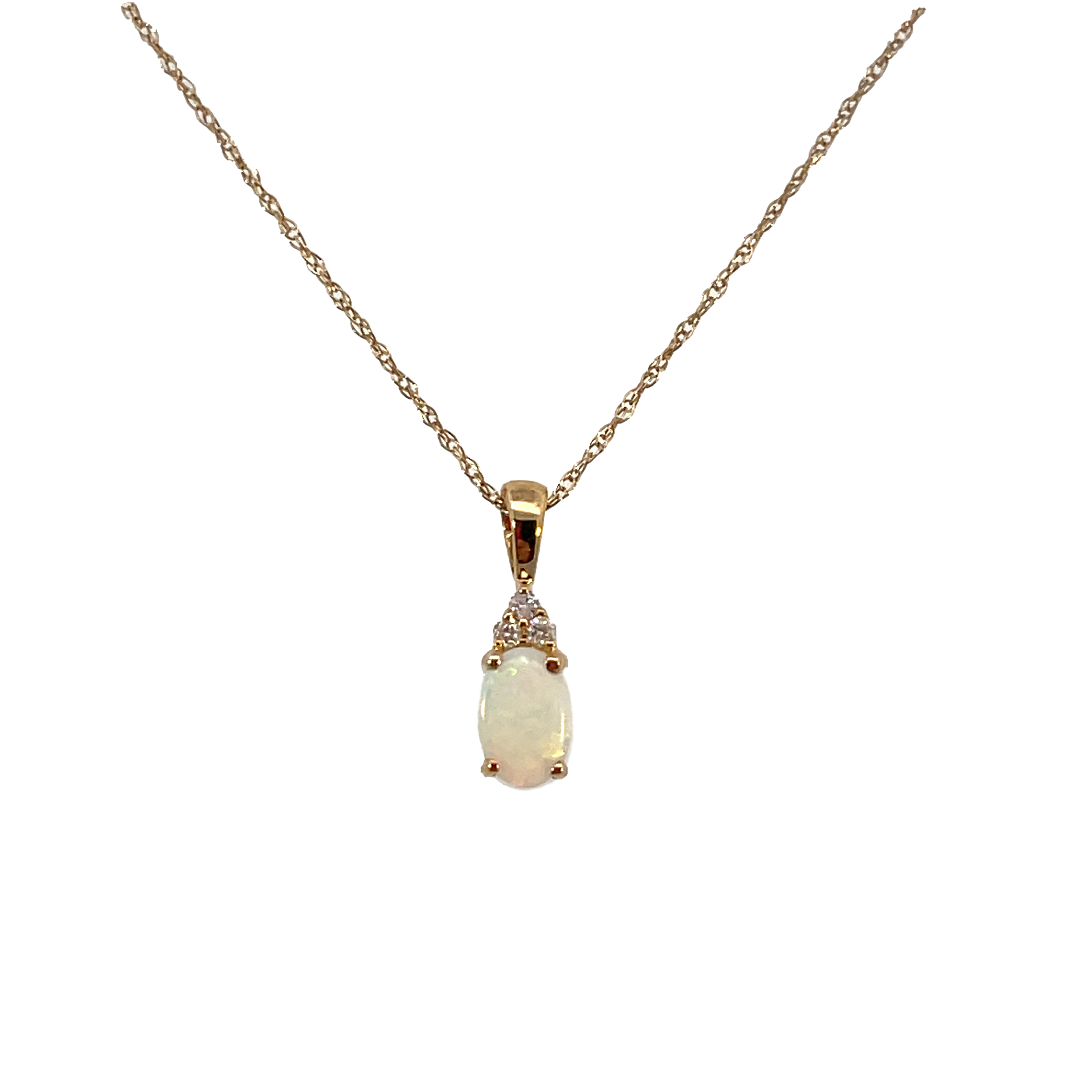 10K Yellow Gold Oval Opal Pendant with Diamond Accents 1/50 CTW