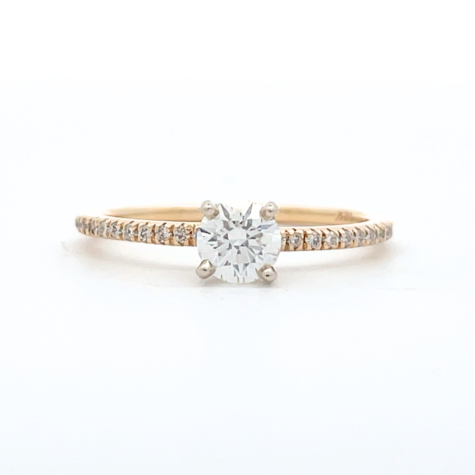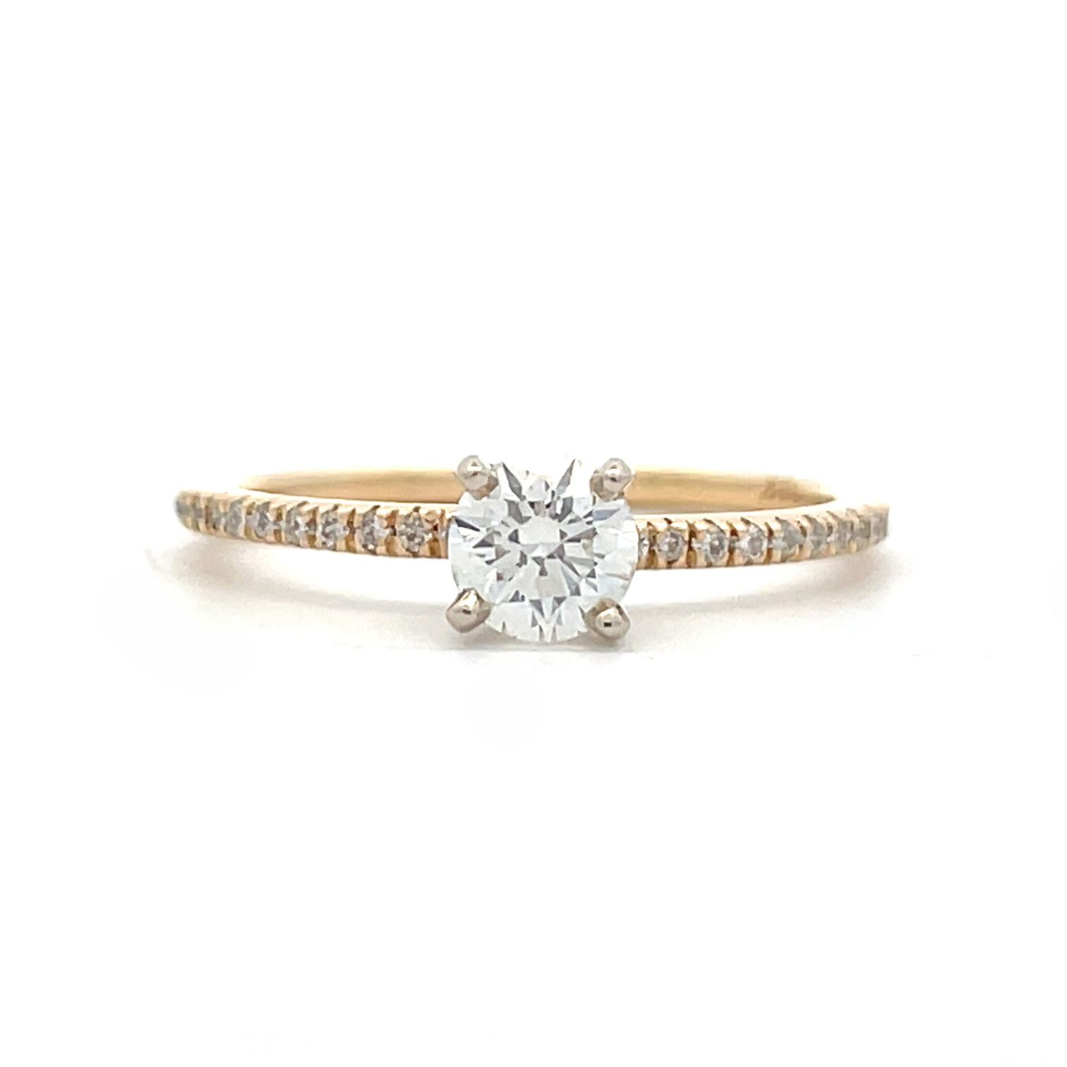 A timeless classic, this accented solitaire engagement ring is sure to please any bride. Features a .40 round brilliant cut center stone and accented with .12 carat total weight of round diamonds on the shank for a total weight of .52 carats.