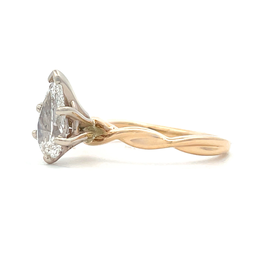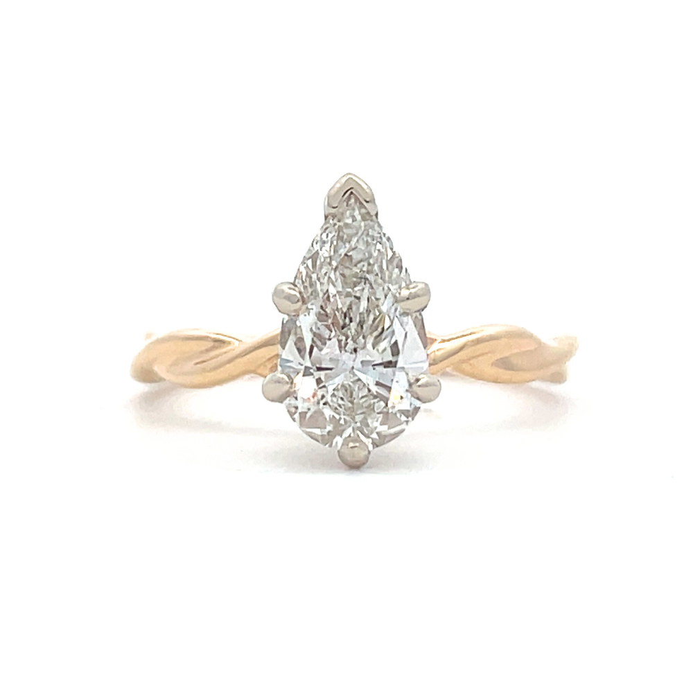 This stunning engagement ring features a 1.22 carat pear shaped GIA certified diamond in a 14K yellow gold setting. With a color of H and clarity of SI-2 this diamond is sure to take her breath away.