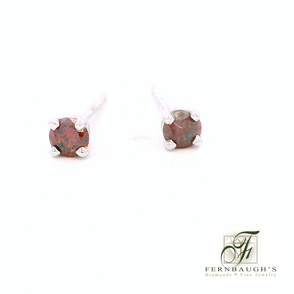 Colored Diamond Stud Earrings Cherry Color .24TW