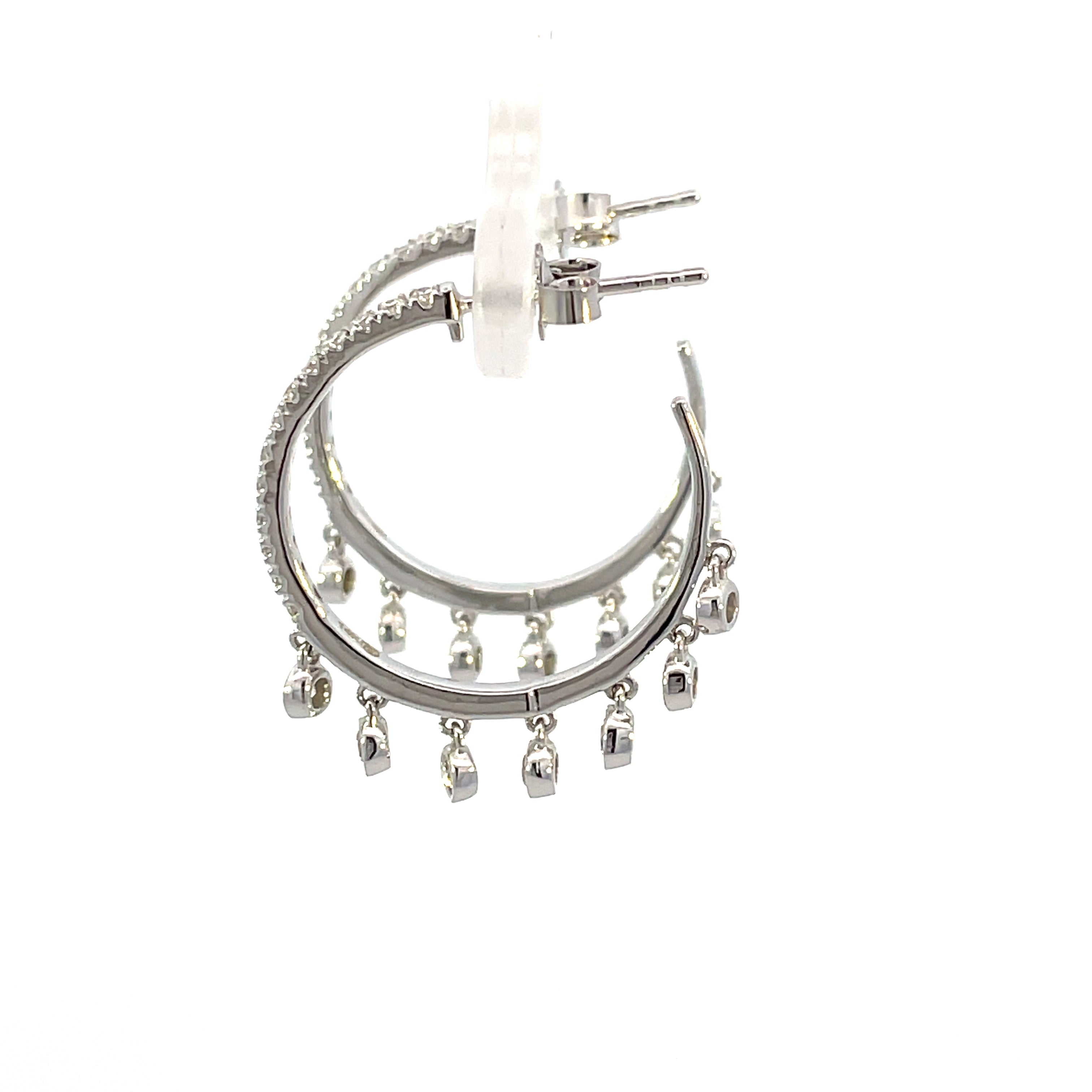 14KW Round Diamond Hoop Earring with Bezel-Set Diamond Dangles