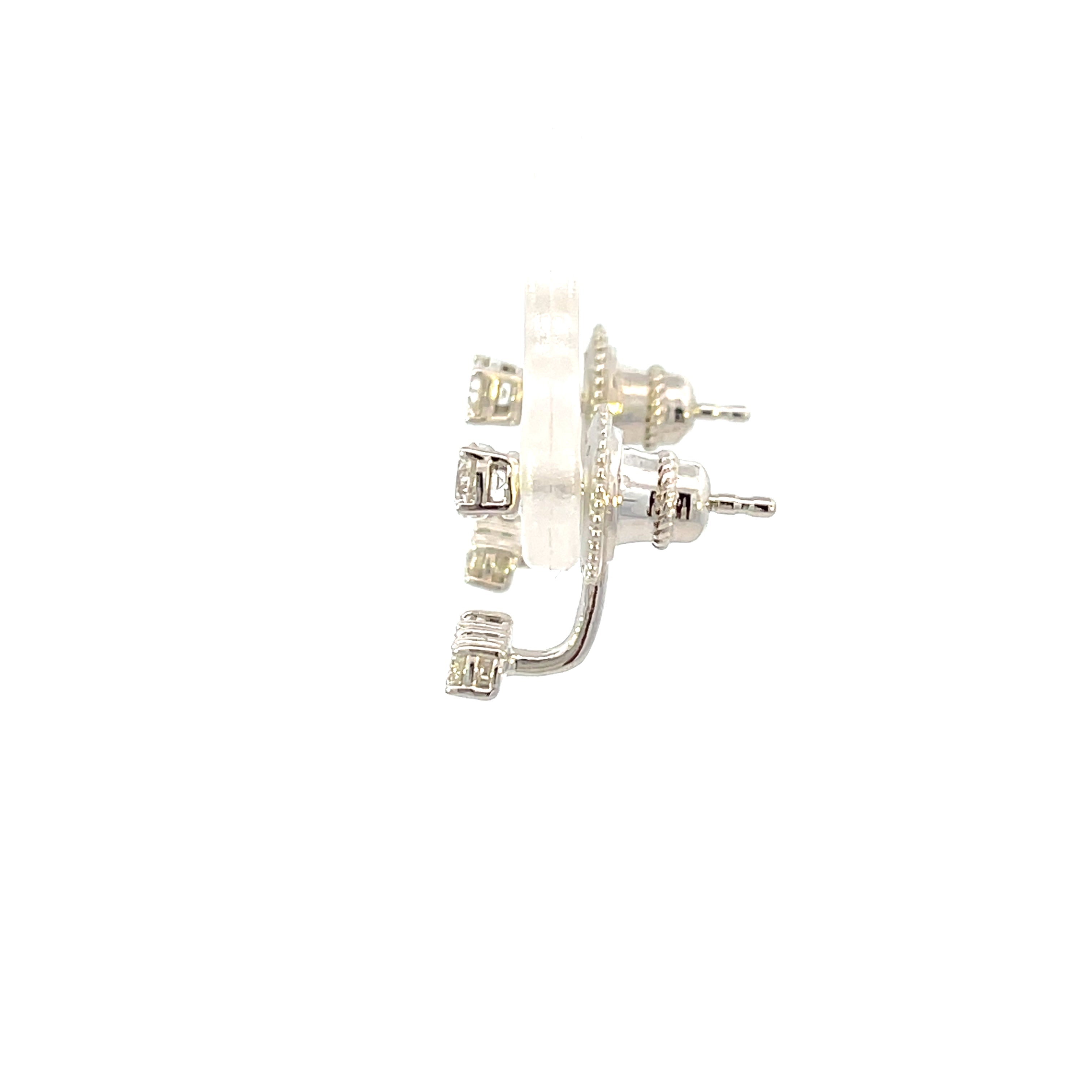 Upgrade your earring game with these Diamond Stud Earrings. Featuring a stunning three-stone earring jacket, these earrings add a touch of elegance to any outfit. Made with 14K white gold and .50 carat total weight of diamonds, these earrings are designed to sparkle and shine.