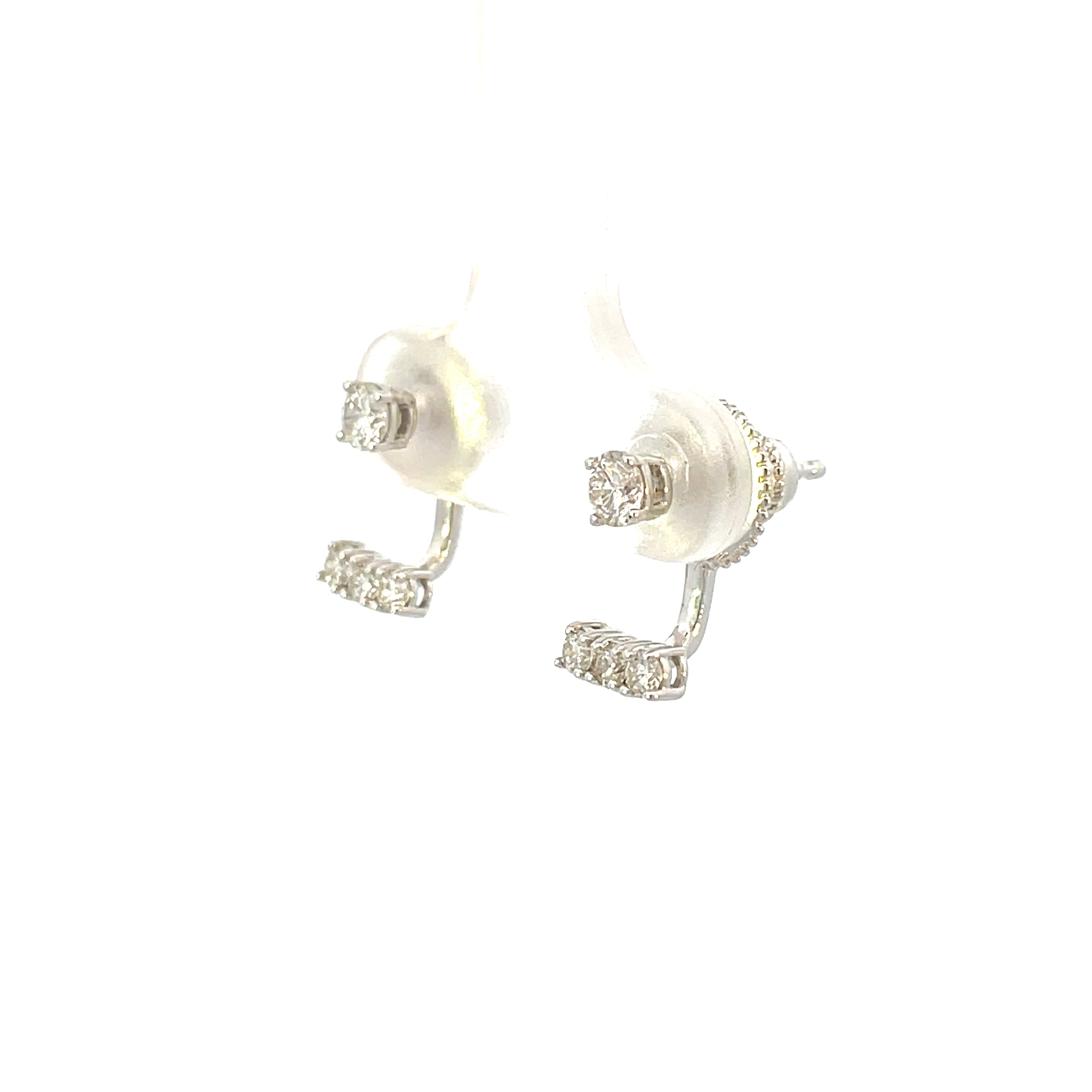 14KW Diamond Stud Earrings with Three-Stone Earring Jackets