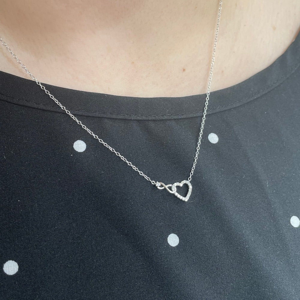 This charming pendant features beautiful diamonds set in sterling silver with an infinity symbol accent on an 18" chain. It would be a perfect gift for you or someone special.